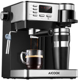 AICOOK Espresso and Coffee Machine, 3 in 1 Combination 15 Bar Espresso Machine and Single Serve Coffee Maker With Coffee Mug, Milk Frother for Cappuccino and Latte, Black