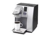 Details: The Keurig B155 K-Cups single serve brewing system is perfect for small office and conference rooms. The Keurig B155 brewing system brews coffee, tea, hot cocoa or iced beverage in under one minute at a touch of a button and is fully programmable with an interactive touchscreen that allows you to program the brew temperature, auto on/off and language preference to English, Spanish or French. *Item sold as pictured-(Manual and original packaging NOT included.