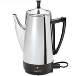 Details: One of the most comforting sounds in the world is the bubbling of a coffee Percolator at work. And then comes the toasty aroma-it makes for a perfect morning. Percolators have come back to home kitchens, and the Presto 12-Cup Stainless Steel Coffee maker is a prime example. Its elegant, hotel-style design brings a touch of luxury to what is for many a daily pleasure. This Coffee maker brews up to twelve Cups of Coffee at a cup-a-minute rate, which it then keeps at a constant, piping-hot serving temperature. An indicator light in the base announces when the coffee is ready. The inner fixtures-thee filter basket and perk tube-are also made of Stainless Steel, rather than the more common (and less durable) aluminum. The power cord is removable to make storage simple. cleaning instructions: before cleaning The Coffee maker, unplug the unit and allow it to cool completely. Wash the Coffee maker with warm, sudsy water and dry It thoroughly; It is not immersible. To preserve the gloss of the Stainless Steel, do not use steel wool or harsh, abrasive cleansers. The perk spout and filter basket can be cleaned with a brush or pipe cleaner. If necessary, Coffee stain Remover can be used periodically on the interior surface. The Coffee maker measures 10 by 5 by 13 inches (including handle, lid, and spout). Presto s this Product with a one-year limited . A simple instruction sheet is enclosed. features: Makes 2 to 12 cups of Coffee as fast as a cup a minute, then keeps it piping hot automatically easy-pour spout and traditional design provide elegant coffee service anytime luxurious Stainless Steel construction for easy cleaning and lasting beauty 120 volts, 60 Hz only